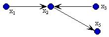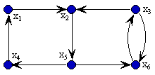 O fecho transitivo direto (ftd) de um vértice v é o conjunto de todos os vértices que podem ser atingidos por algum caminho iniciando em v. O ftd do vértice x5 do grafo G17, por exemplo, é o conjunto: {x1, x2, x3, x4, x5, x6}. Note que o próprio vértice faz parte do ftd já que ele é alcançável partindo-se dele mesmo. | |
